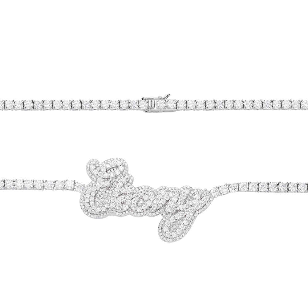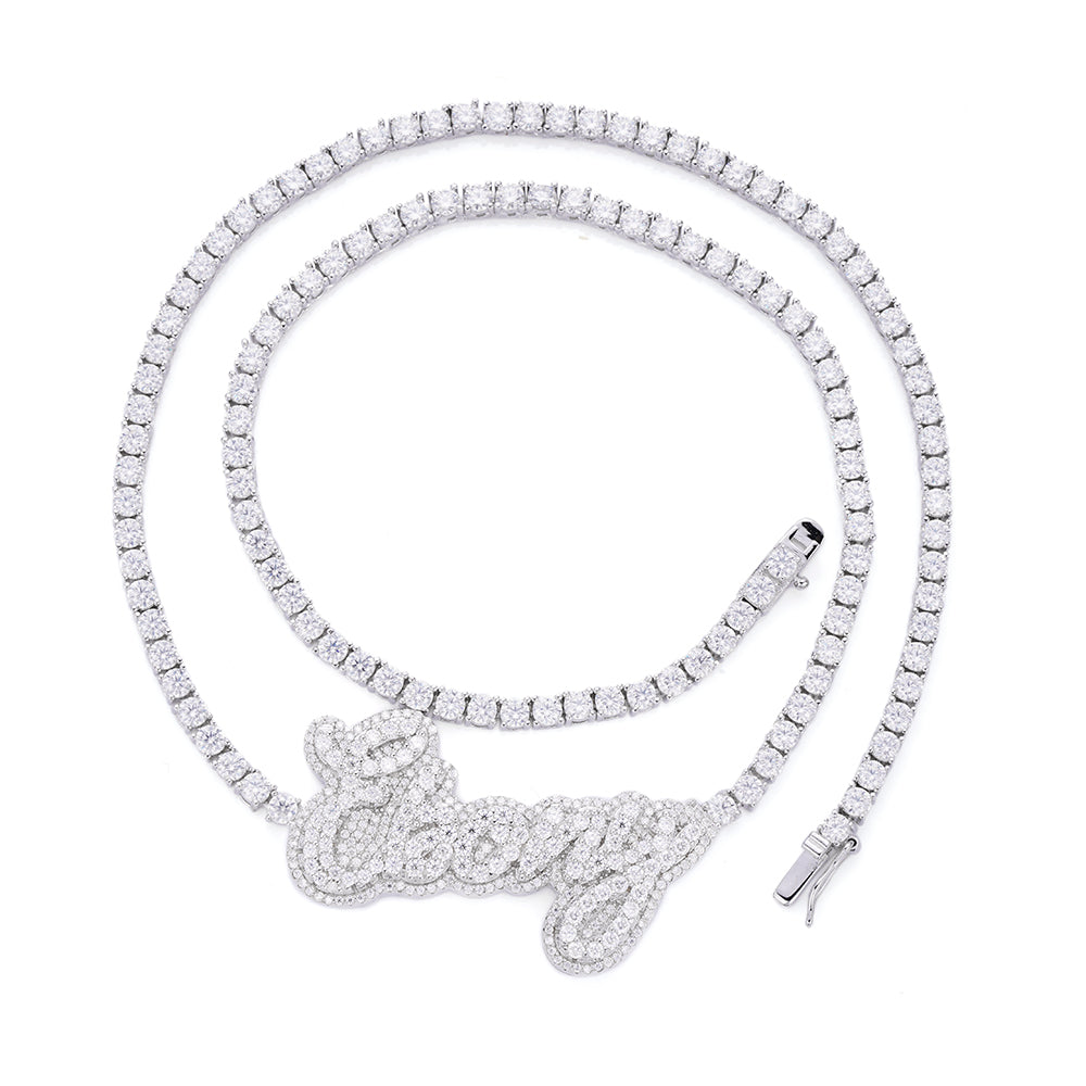 S.Silver Round Moissanite Ebony Word Designer 18 Inch Necklace RP 16-1/8 Cttw