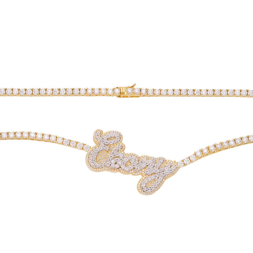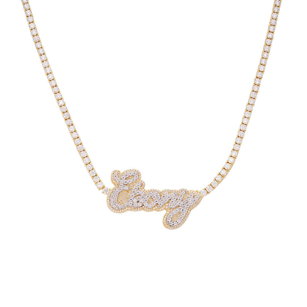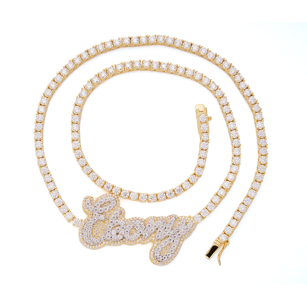 S.Silver Round Moissanite Ebony Word Designer 18 Inch Necklace RP+GP 16-1/8 Cttw