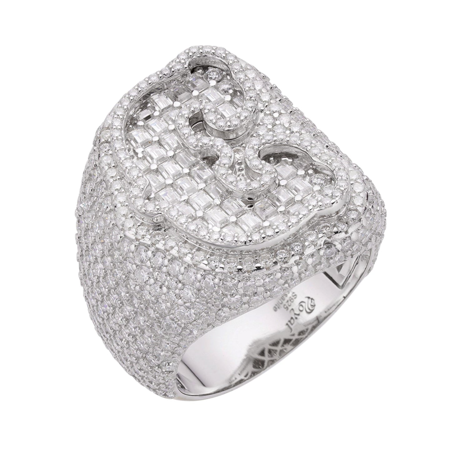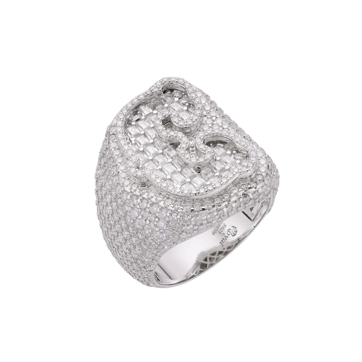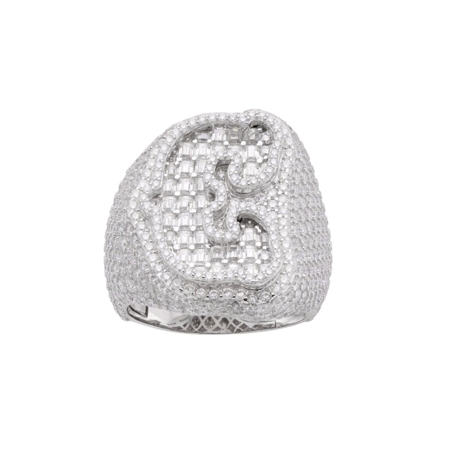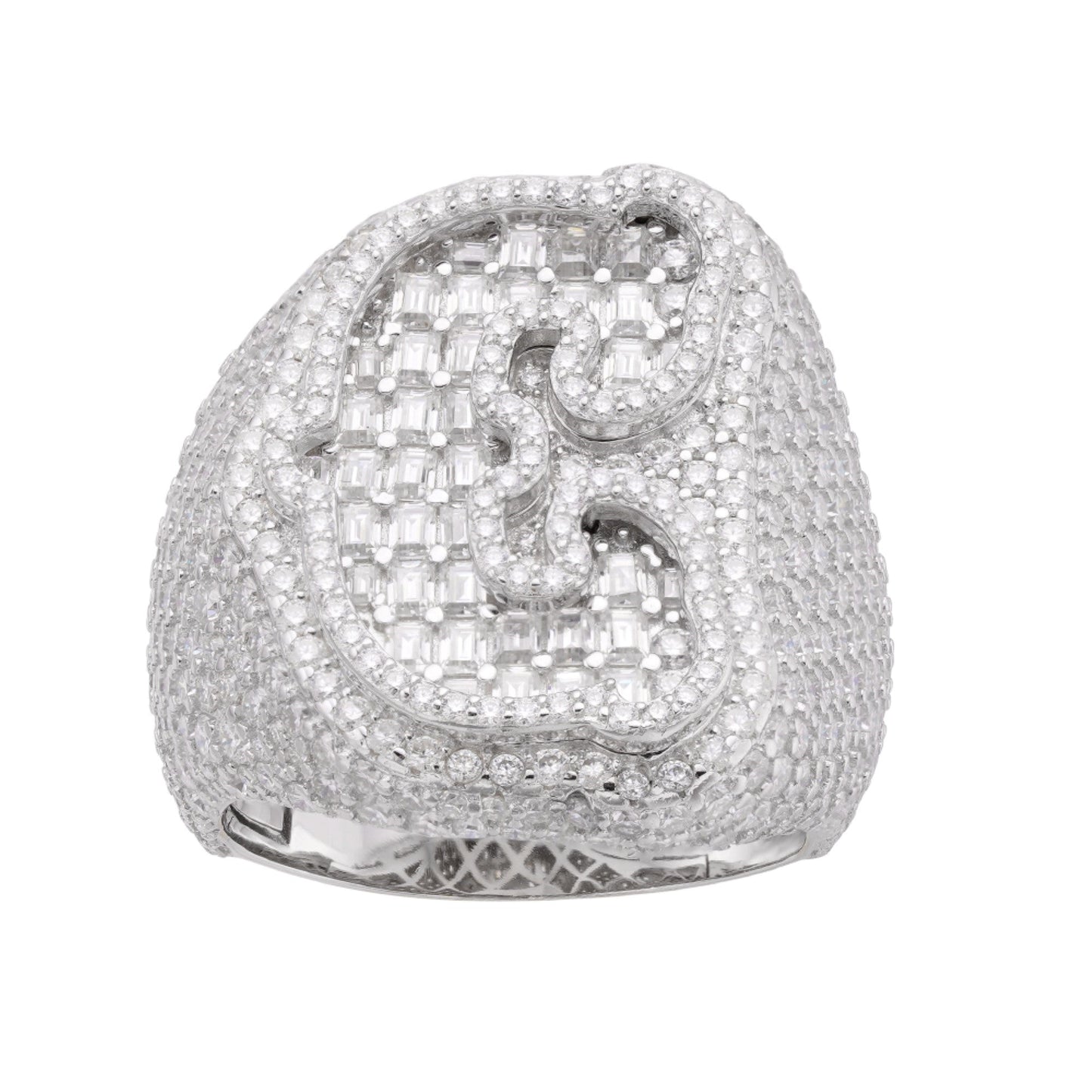 S.Silver Round Baugette Moissanite Albhabet C letter Initial SZ 10 Mens Ring RP 7-1/10 Cttw