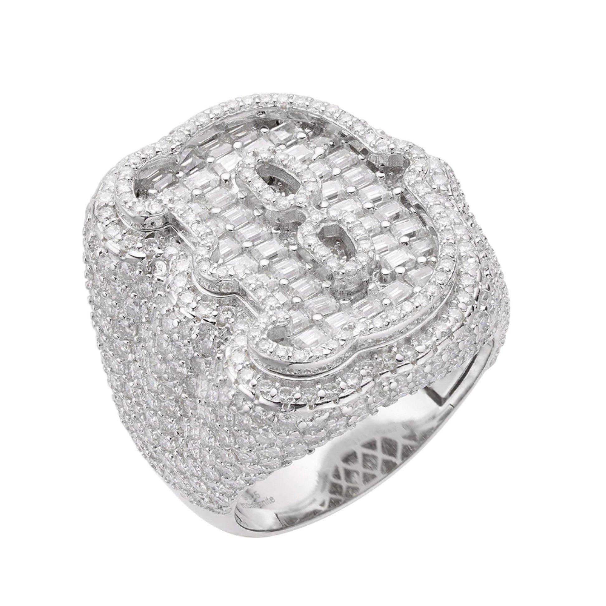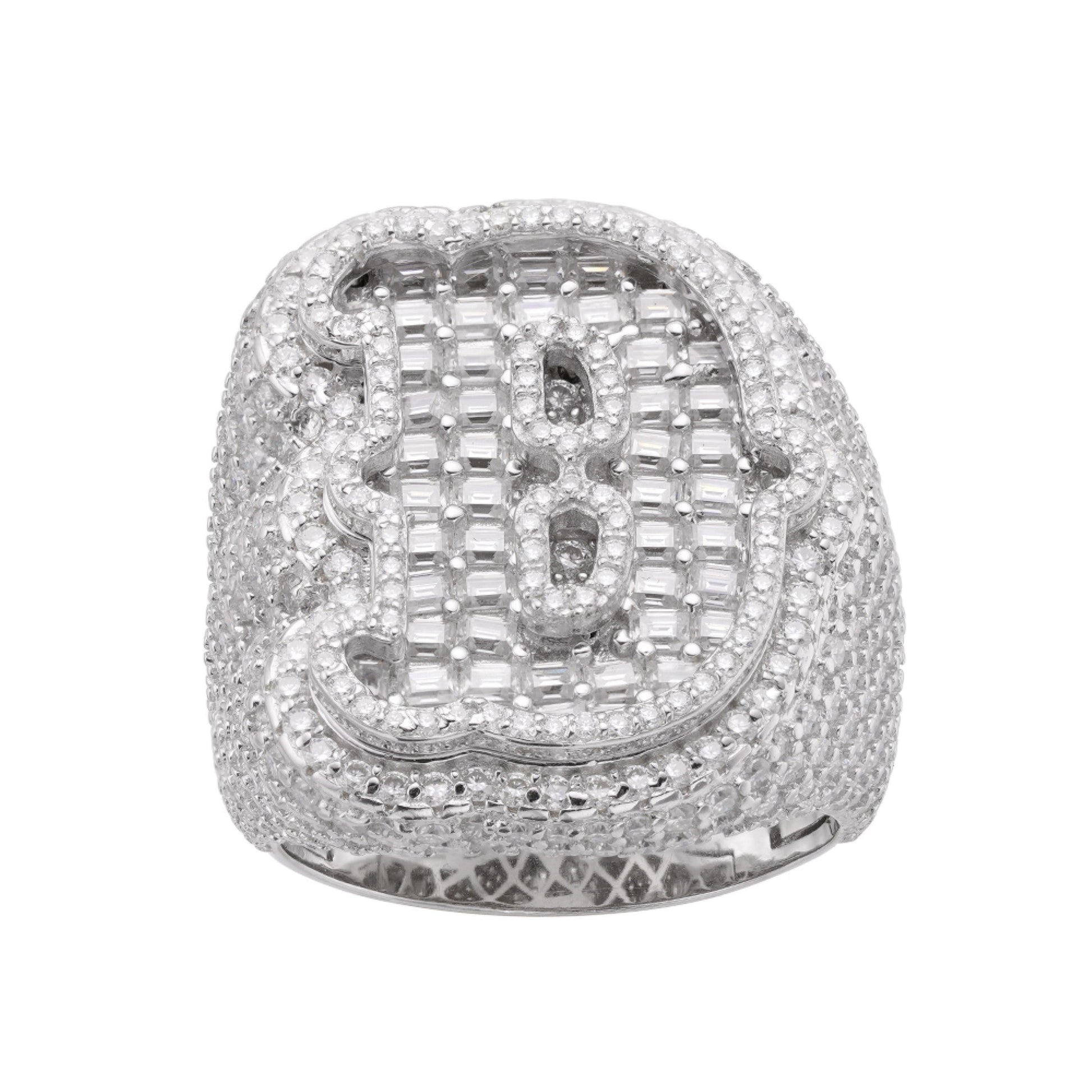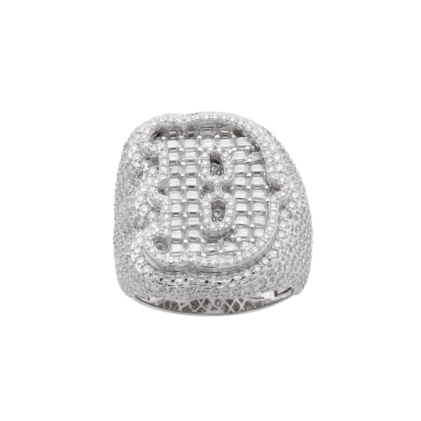 S.Silver Round Baugette Moissanite Albhabet D letter Initial SZ 10 Mens Ring RP 7-1/4 Cttw