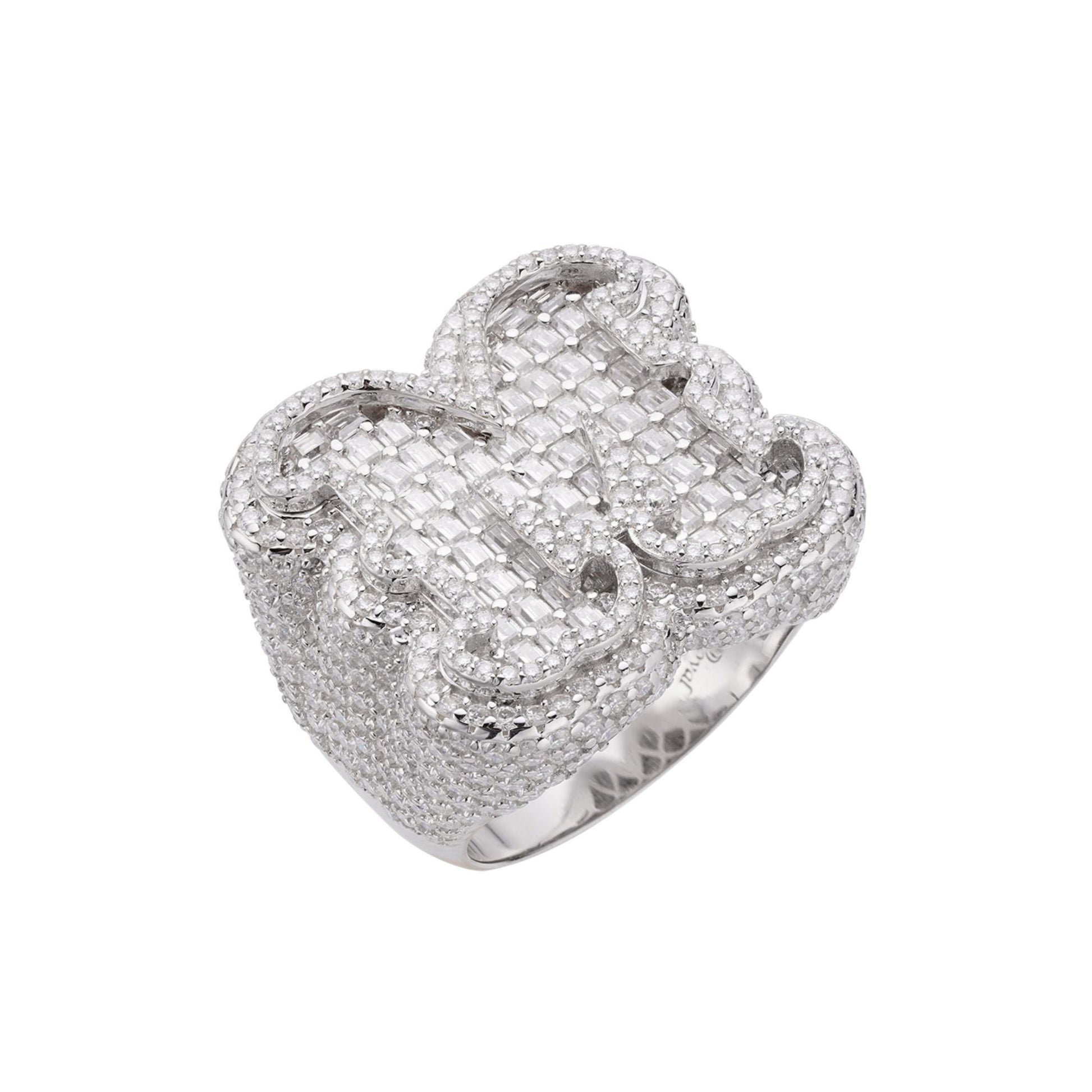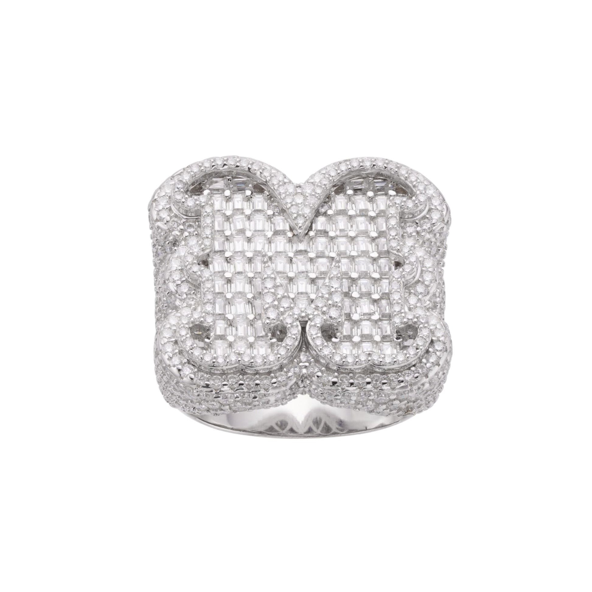 S.Silver Round Baugette Moissanite Albhabet M letter Initial SZ 10 Mens Ring RP 9-1/8 Cttw