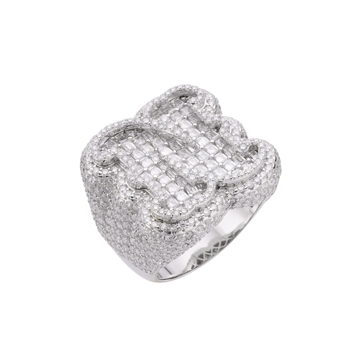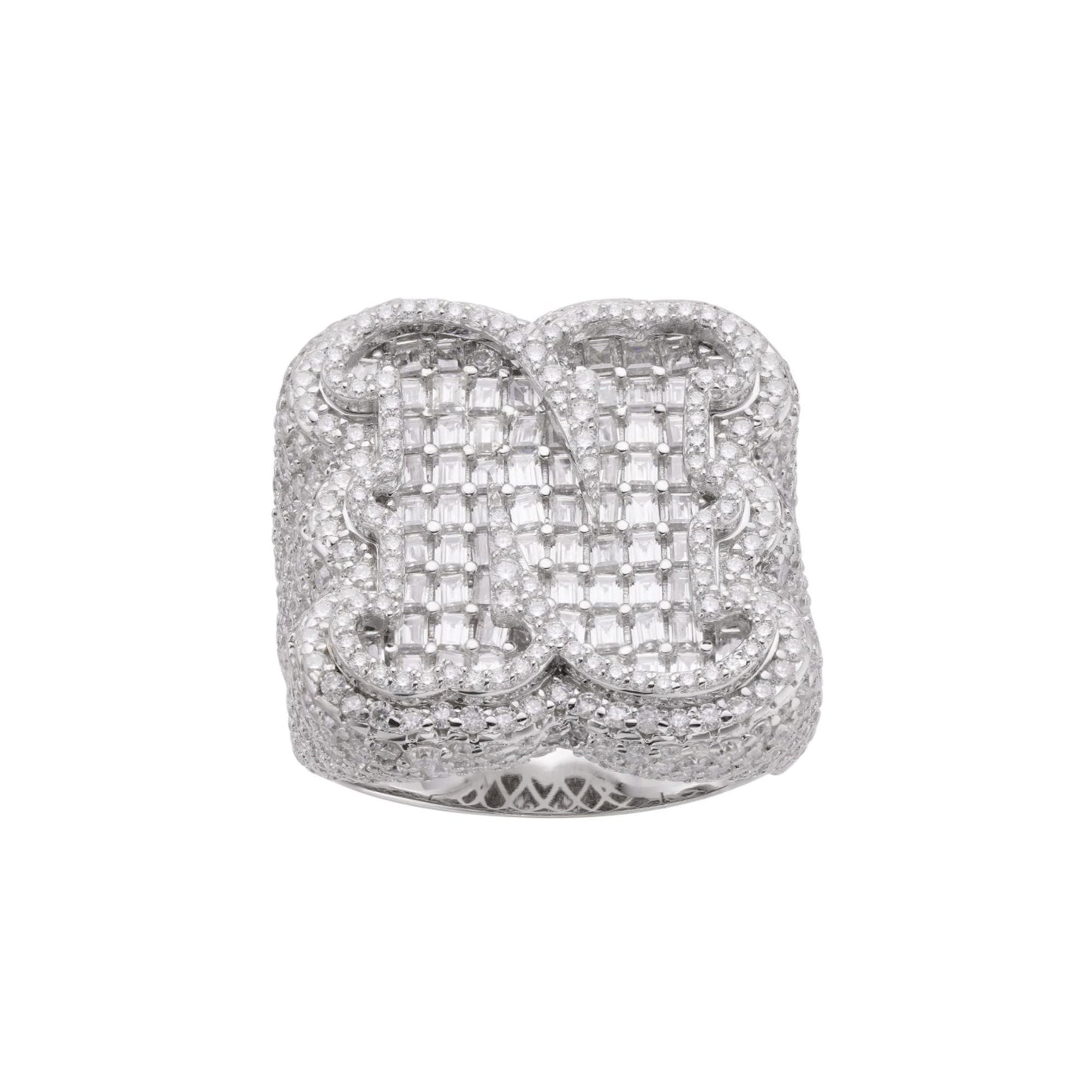 S.Silver Round Baugette Moissanite Albhabet N letter Initial SZ 10 Mens Ring RP 8-3/4 Cttw