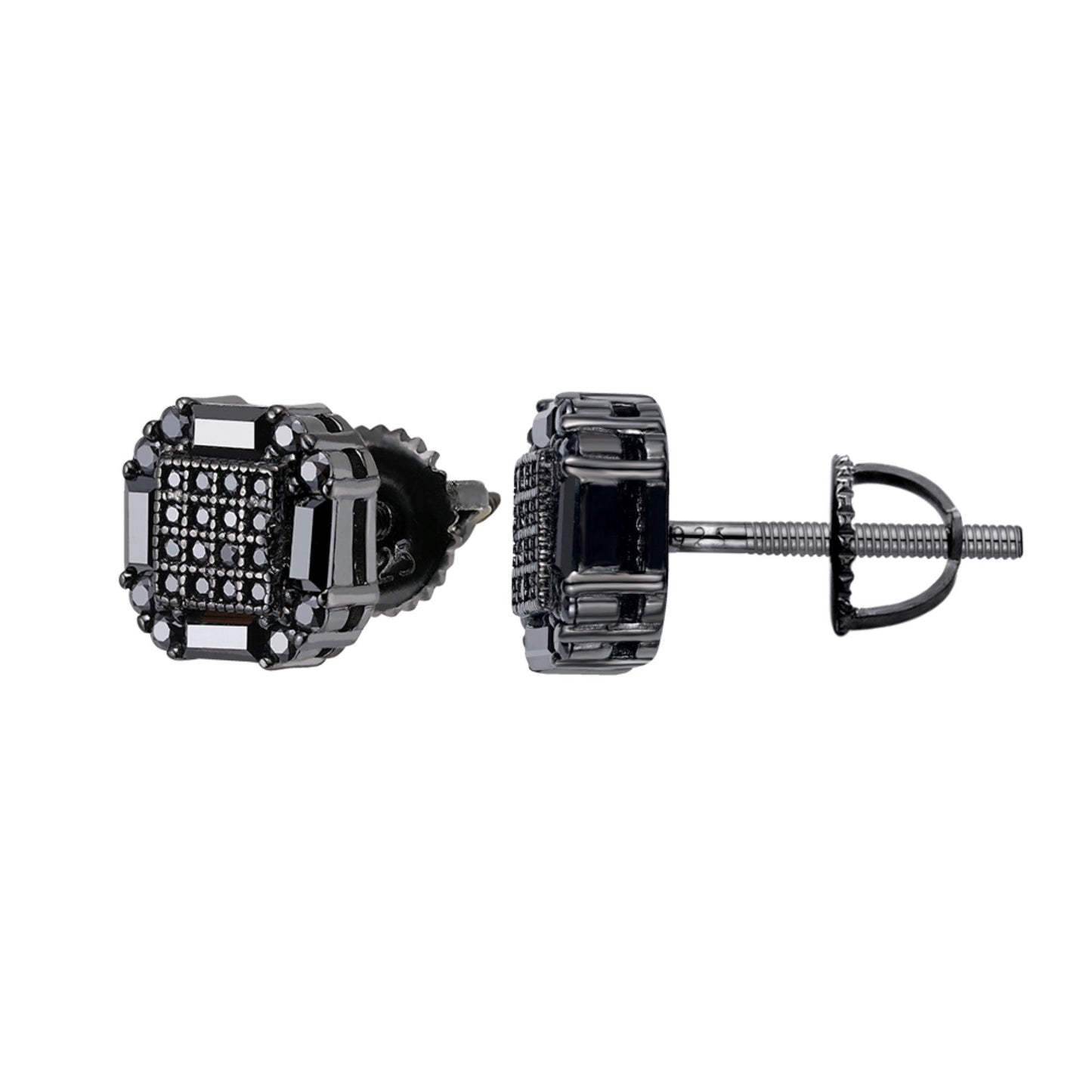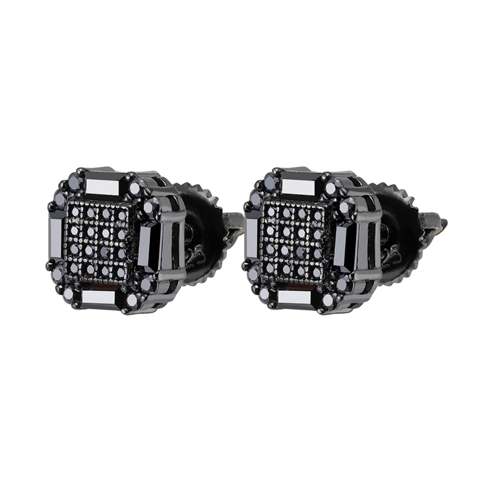 S.Silver Round Baguette Black Moissanite Square Shape Stud Earrings BP+BP 7/8 Cttw