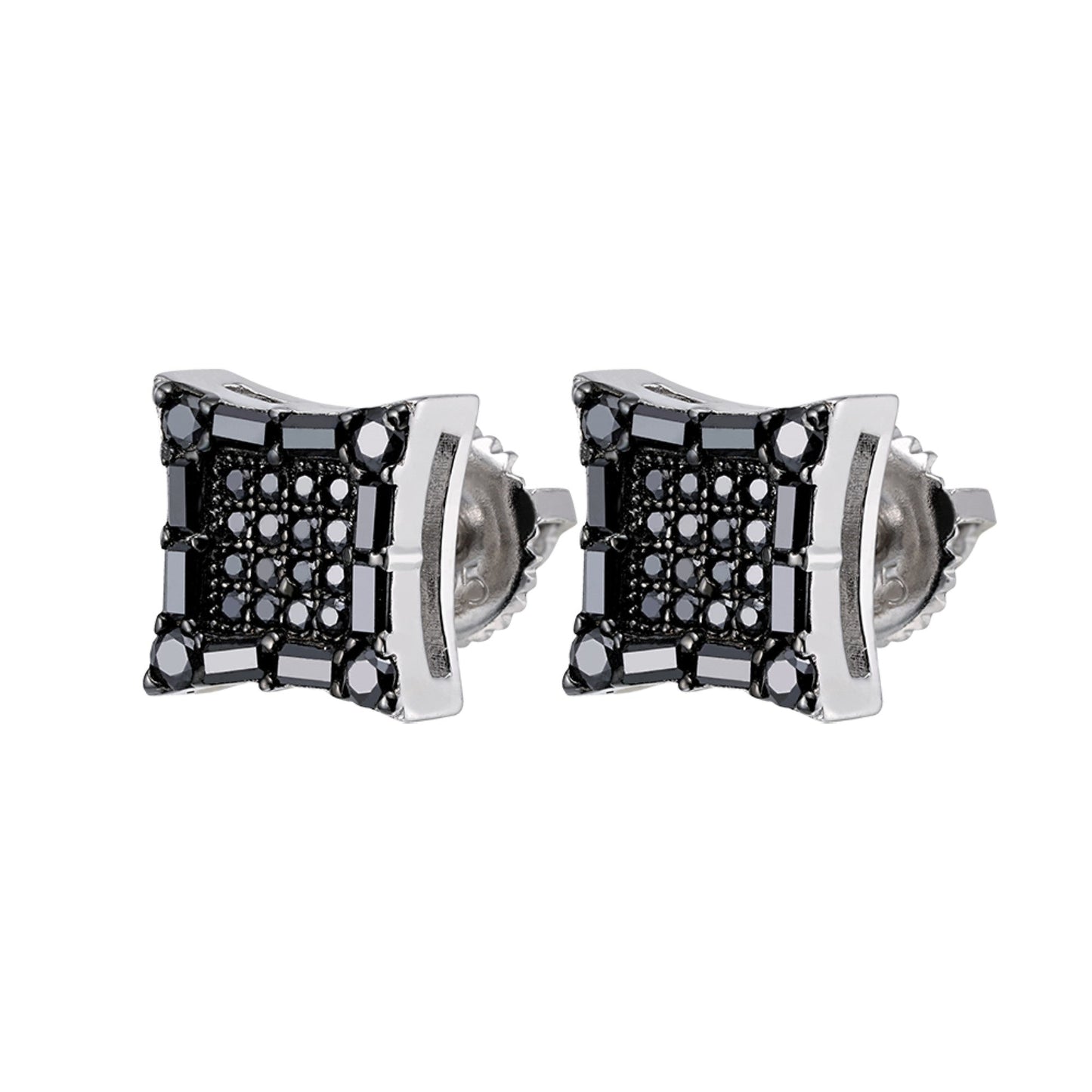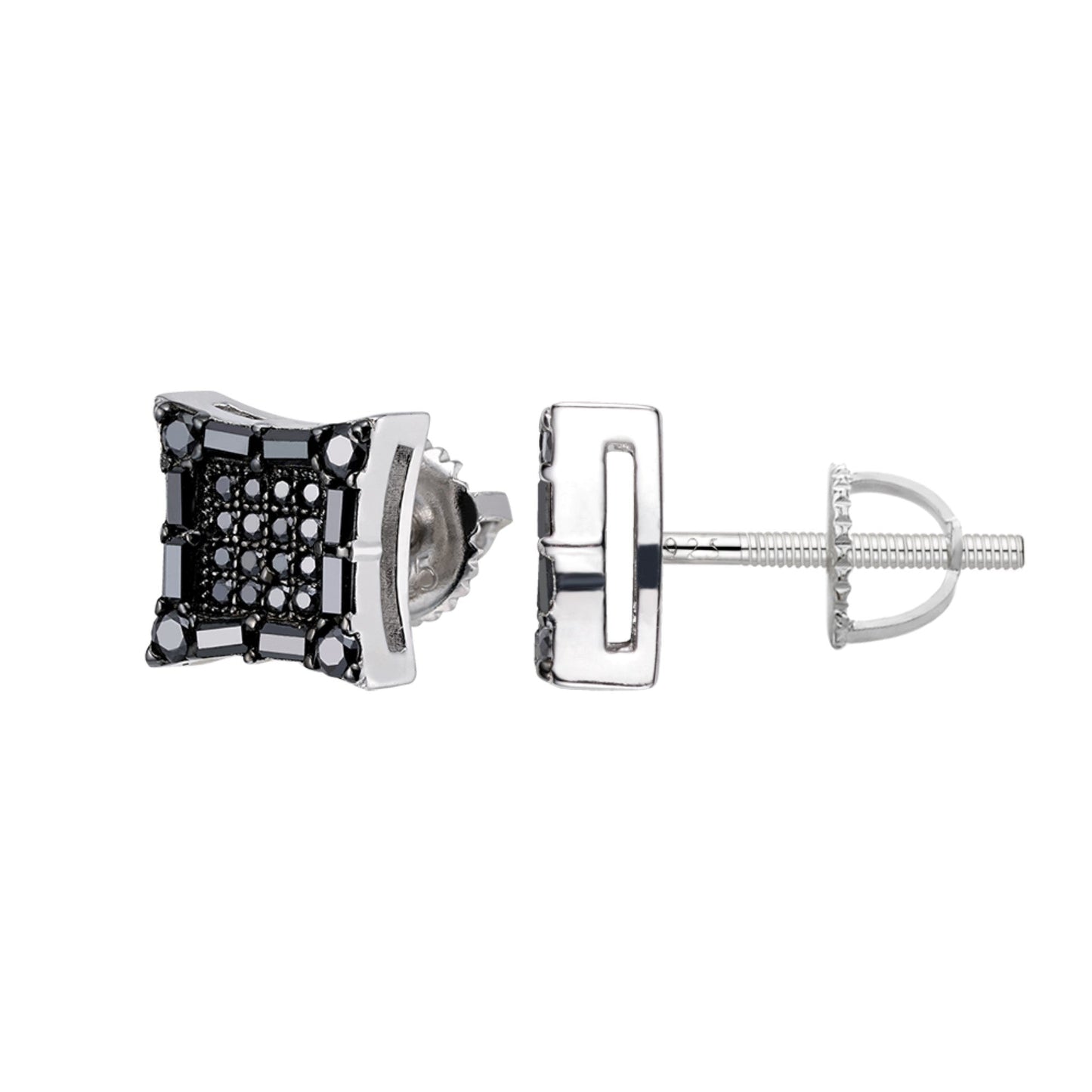 S.Silver Round Baguette Black Moissanite Square Shape Stud Earrings BP+RP 5/8 Cttw