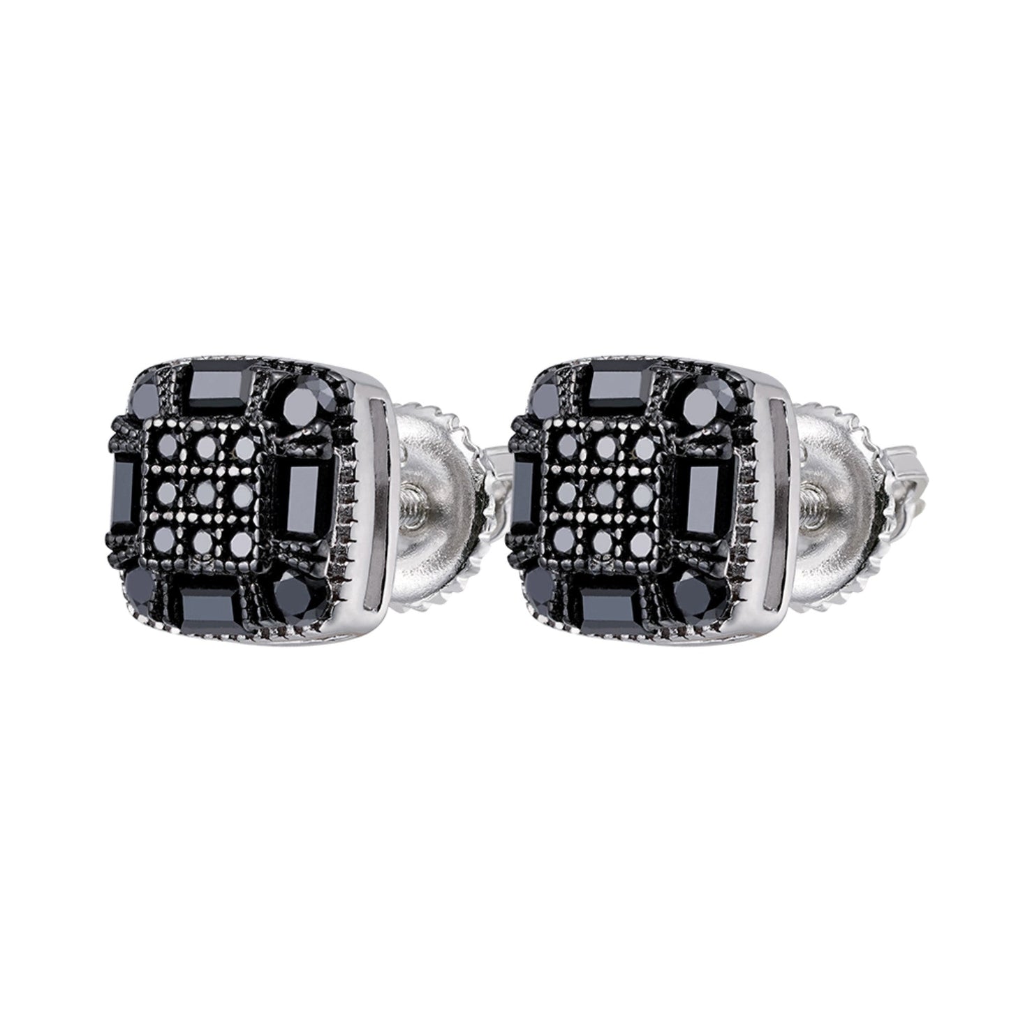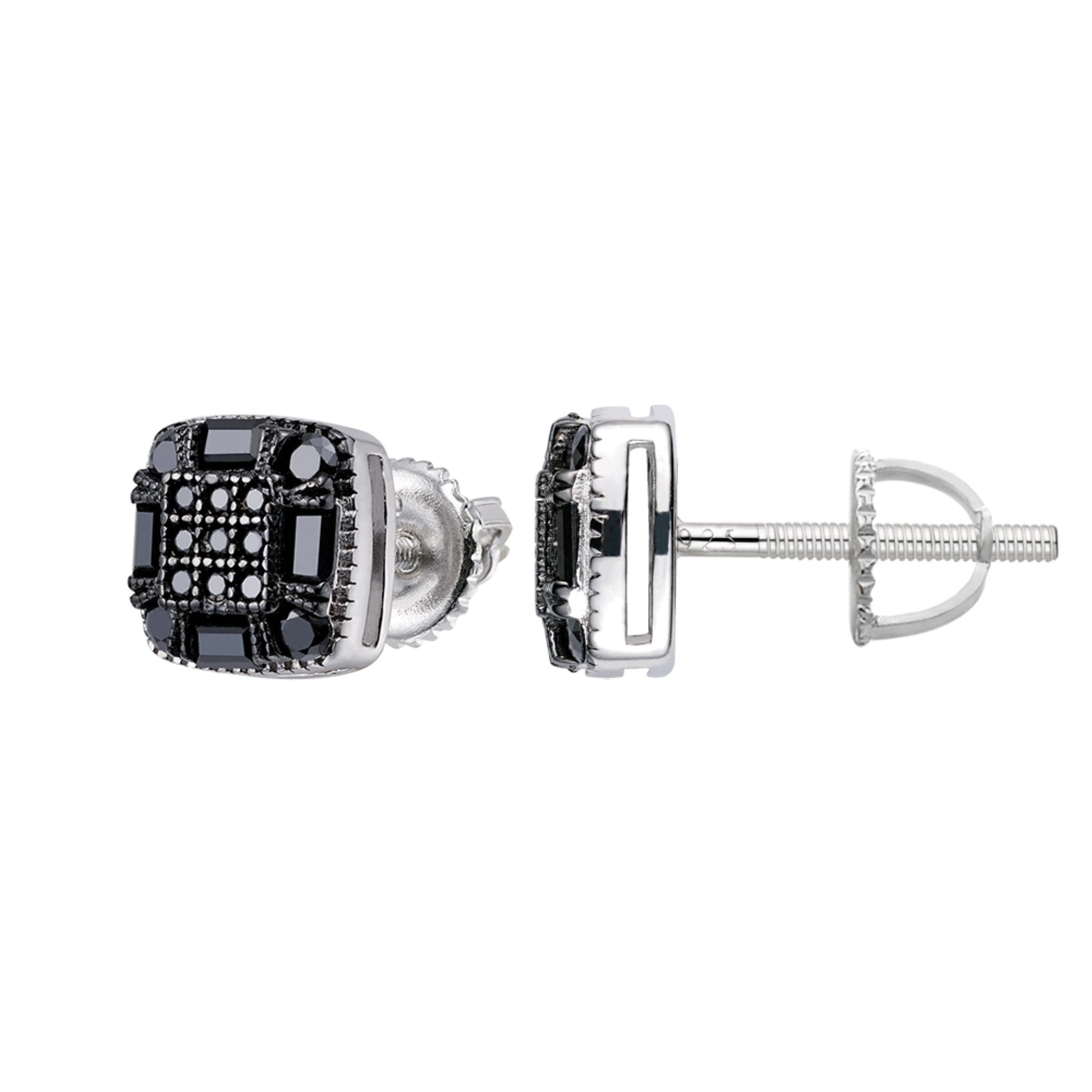 S.Silver Round Baguette Black Moissanite Square Shape Stud Earrings BP+RP 3/4 Cttw