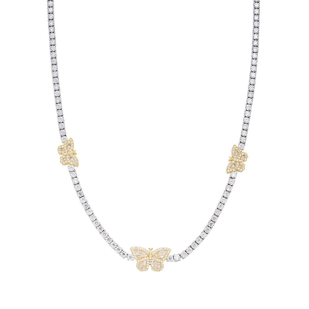 S.Silver Round Baguette Moissanite Butterfly Designer 18 Inch Necklace RP+GP 1-5/8 Cttw