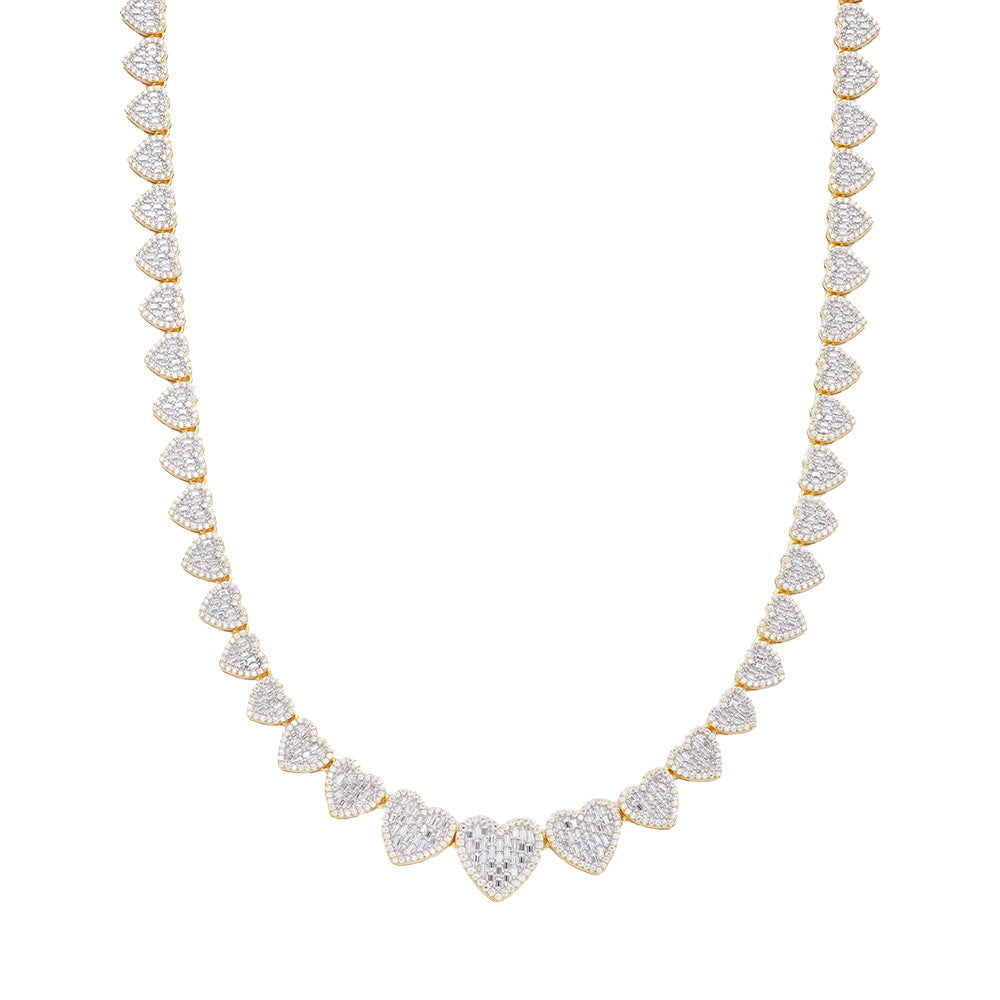 S.Silver Round Baguette Moissanite Heart 18 Inch Necklace RP+GP 15-3/4 Cttw