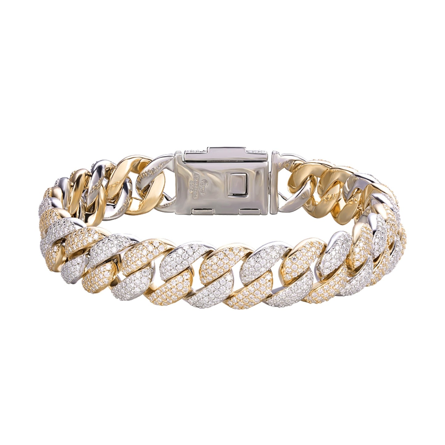 S.Silver Moissanite 12mm Cuban Bracelet 8 Inch RP+GP 7-3/4 Cttw