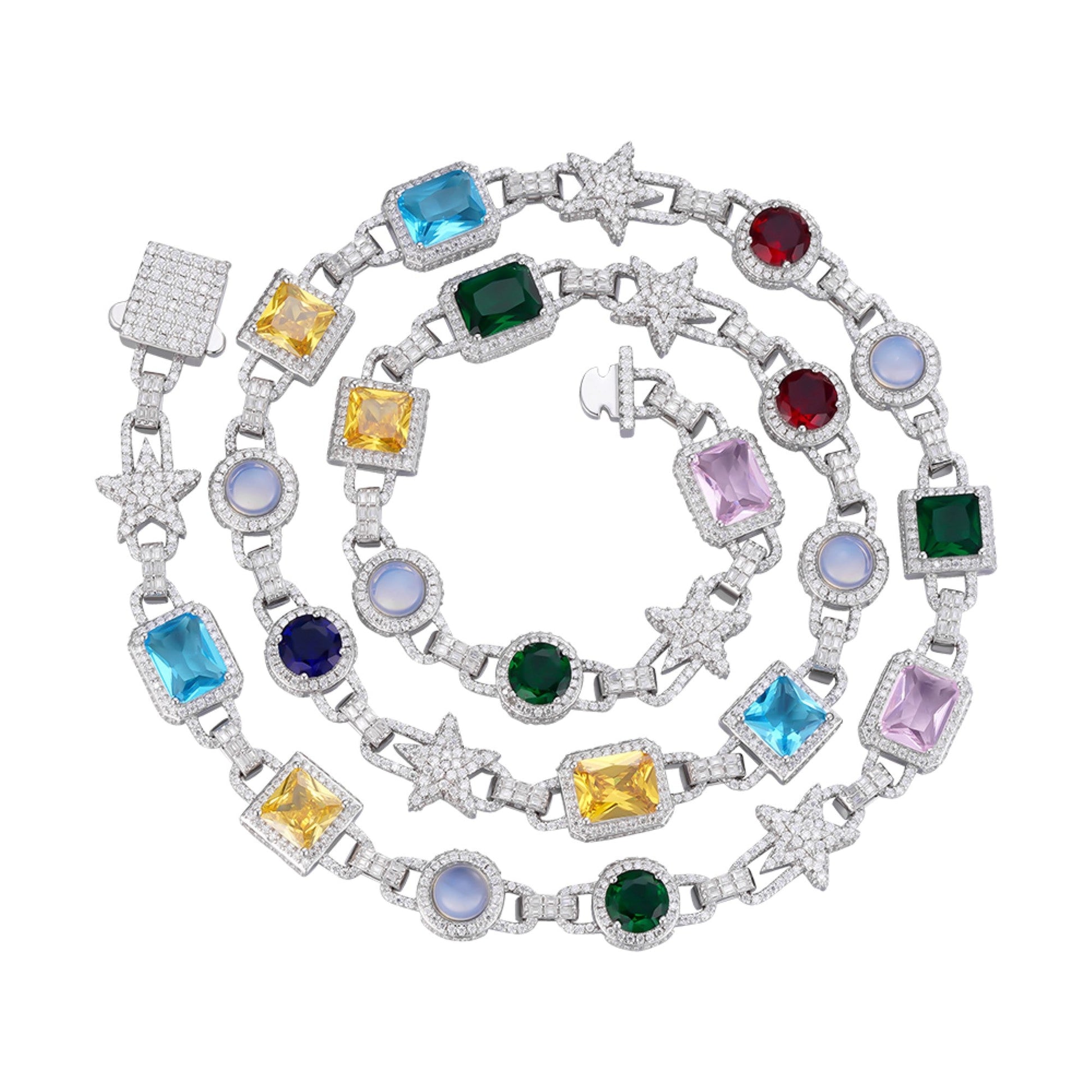 S.Silver Round Moissanite Star with Color Stone Designer 22 Inch Necklace RP 15-1/2 Cttw