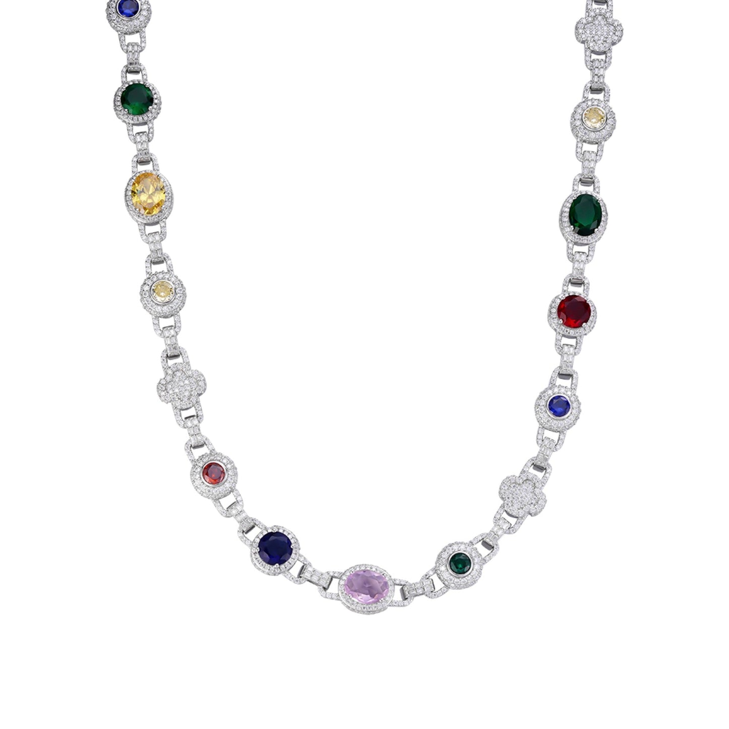 S.Silver Round Moissanite with Color Stone Designer 22 Inch Necklace RP 17-5/8 Cttw