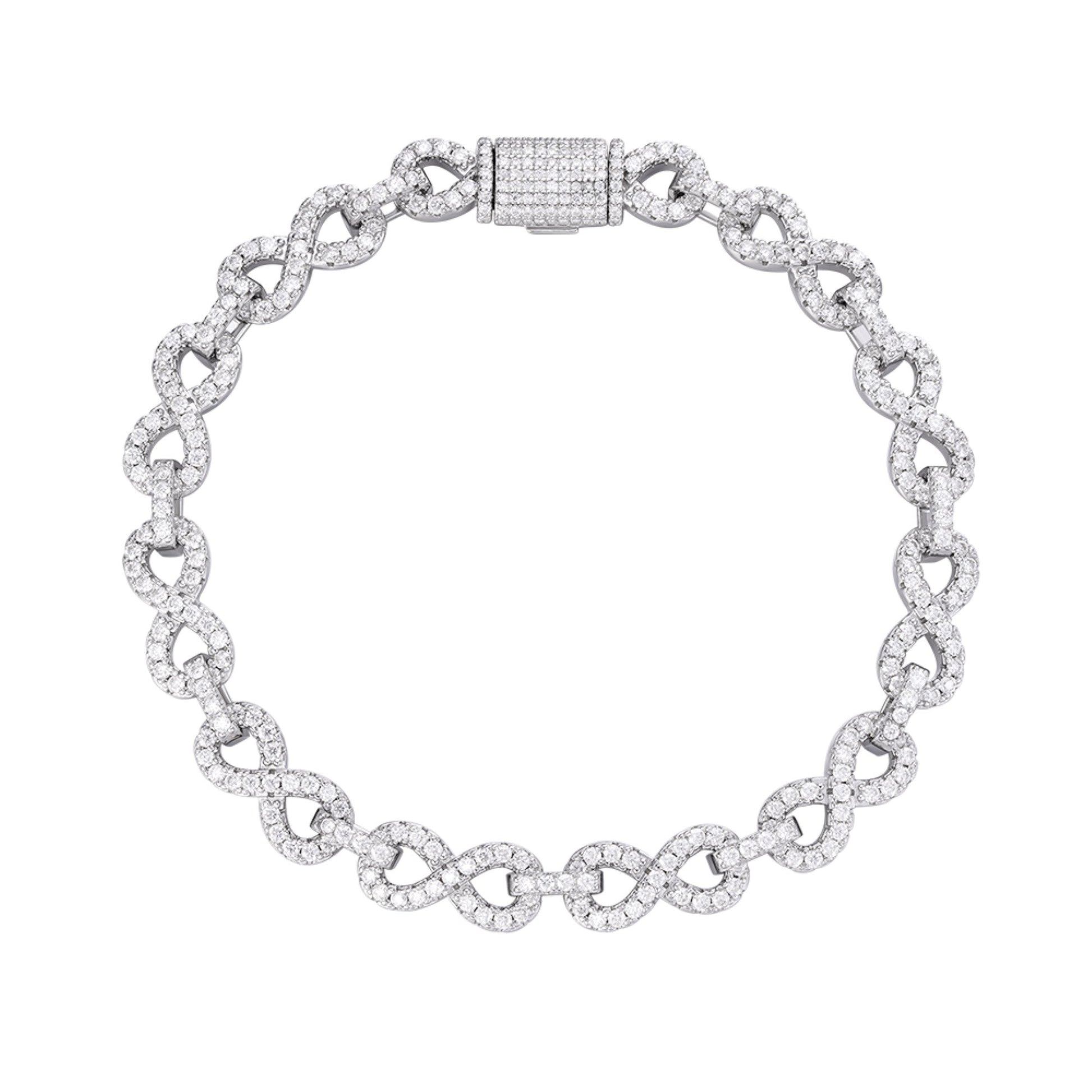 S.Silver 8mm Round Moissanite Infinity 8 Inch Designer Bracelet RP 8-3/4 Cttw