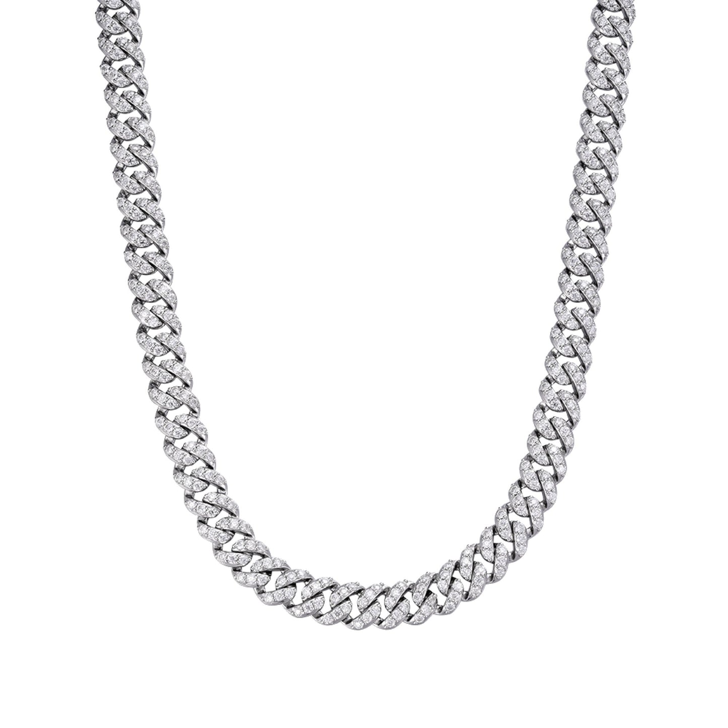 S.Silver 10mm Round Moissanite 1 Row Cuban 20 Inch Necklace RP 19-7/8 Cttw