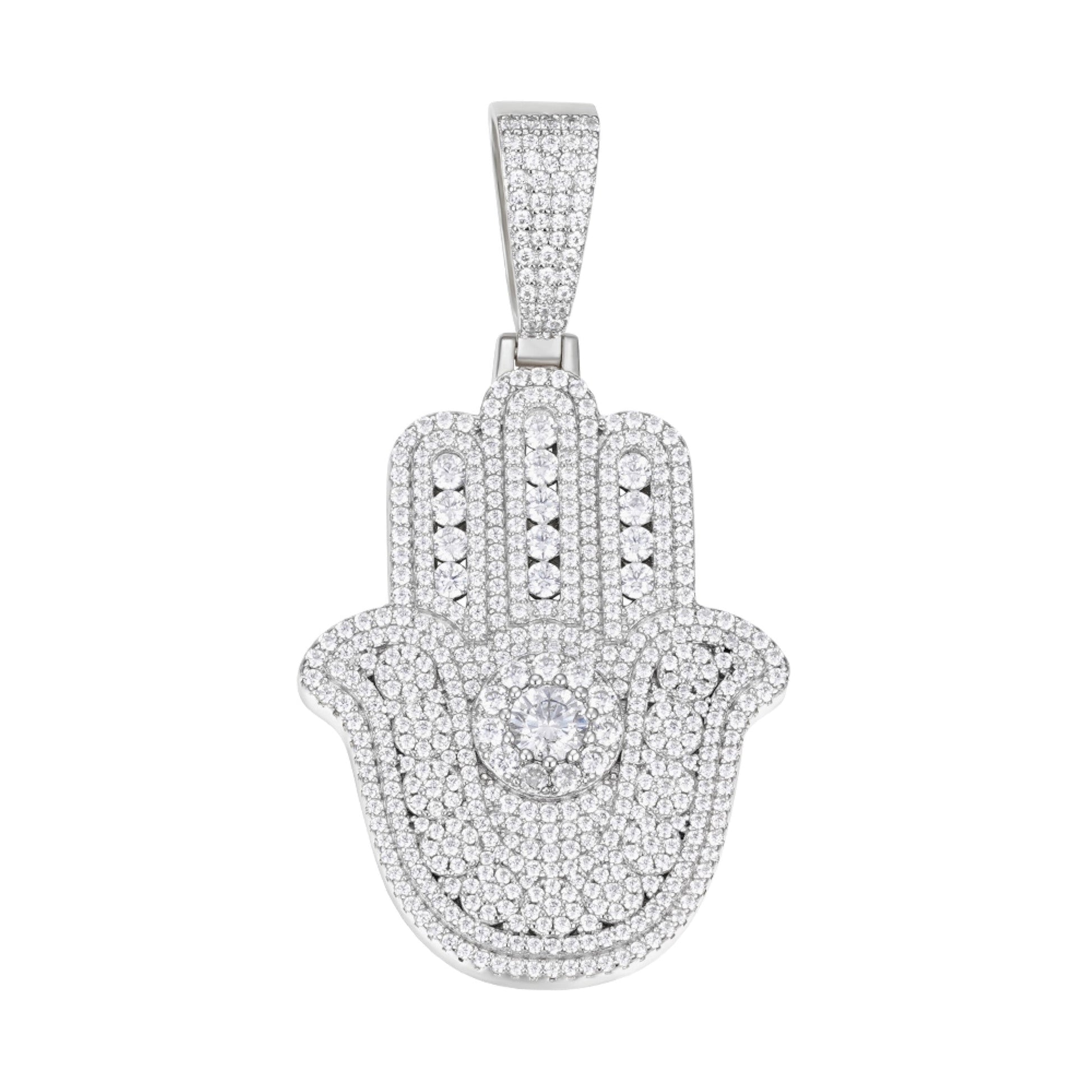 S.Silver Round Moissanite Hamza Hand Religious Pendant RP 4-3/8 Cttw
