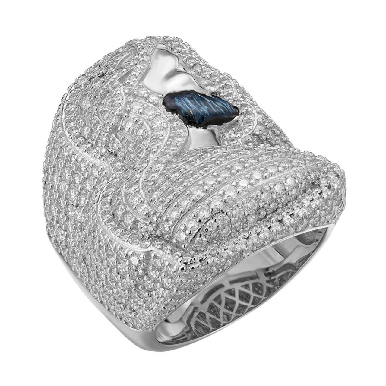 S.Silver Round Moissanite Jesus Religious SZ 10 Mens Ring RP 5-7/8 Cttw