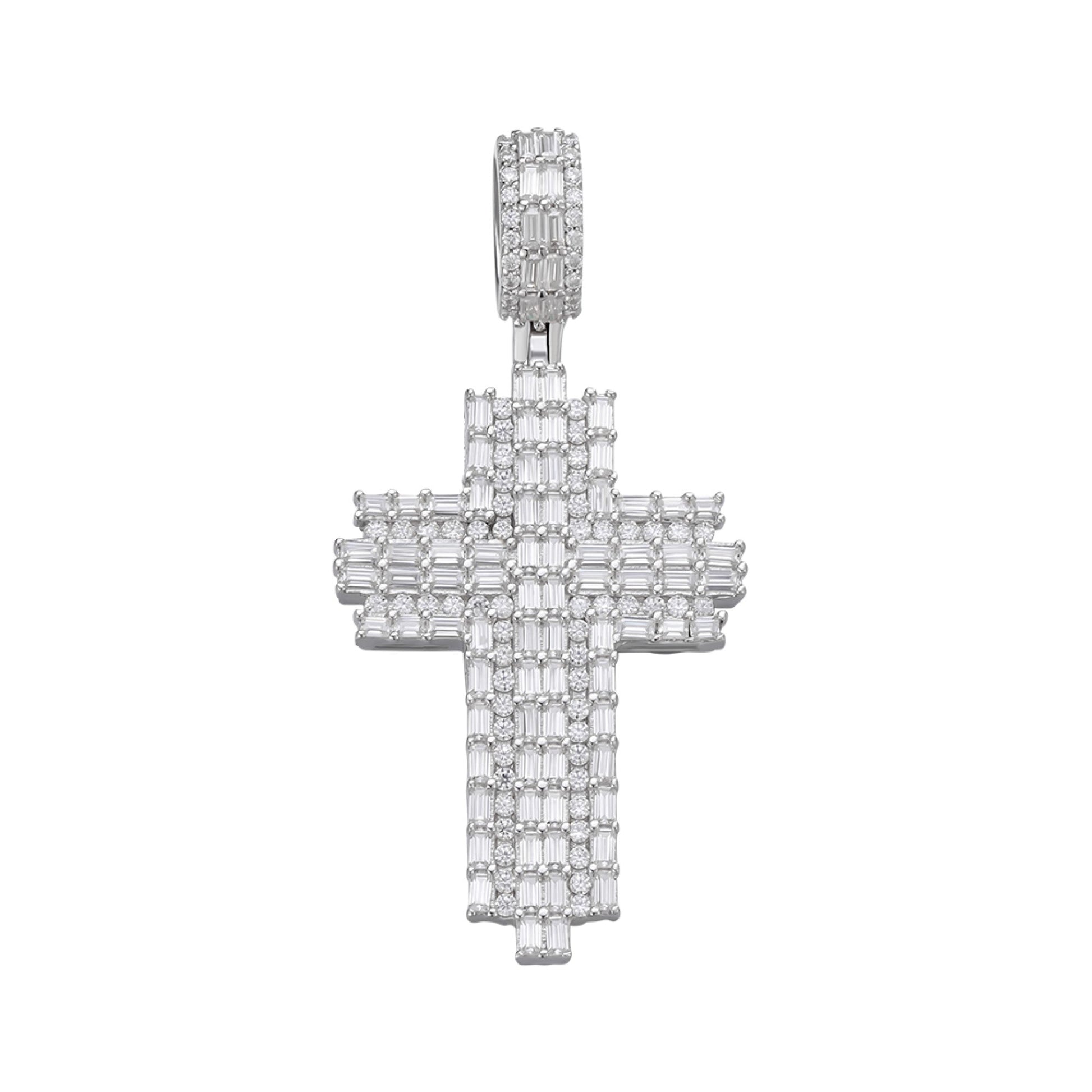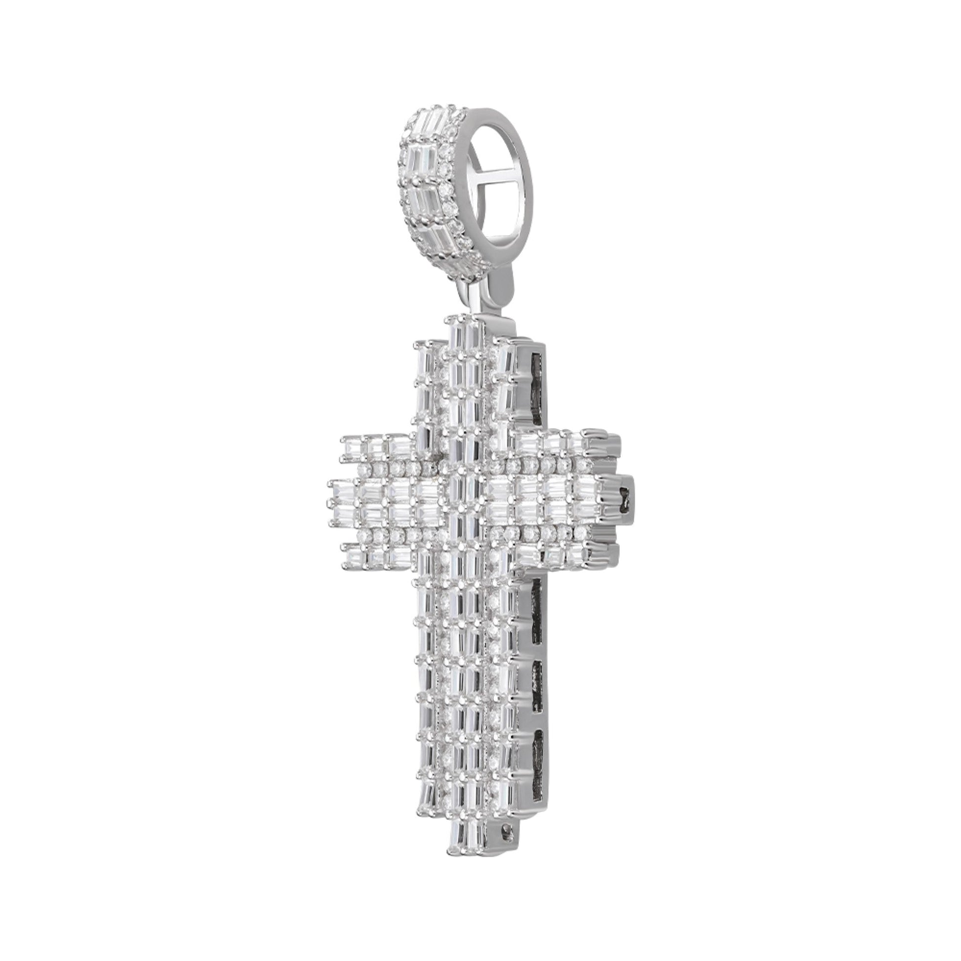S.Silver 30mm Round Baguette Moissanite Cross Religious Pendant RP 2-3/4 Cttw