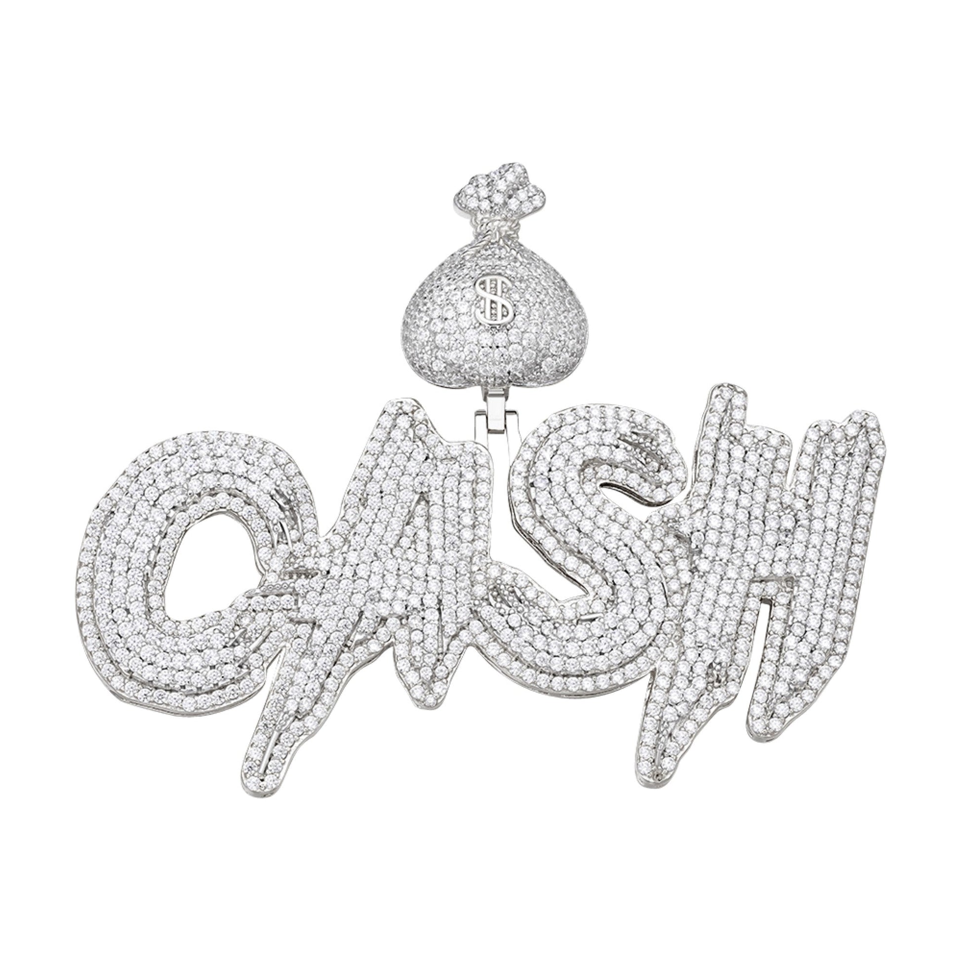 S.Silver Round Moissanite CASH Word Designer Pendant RP 7-1/2 Cttw