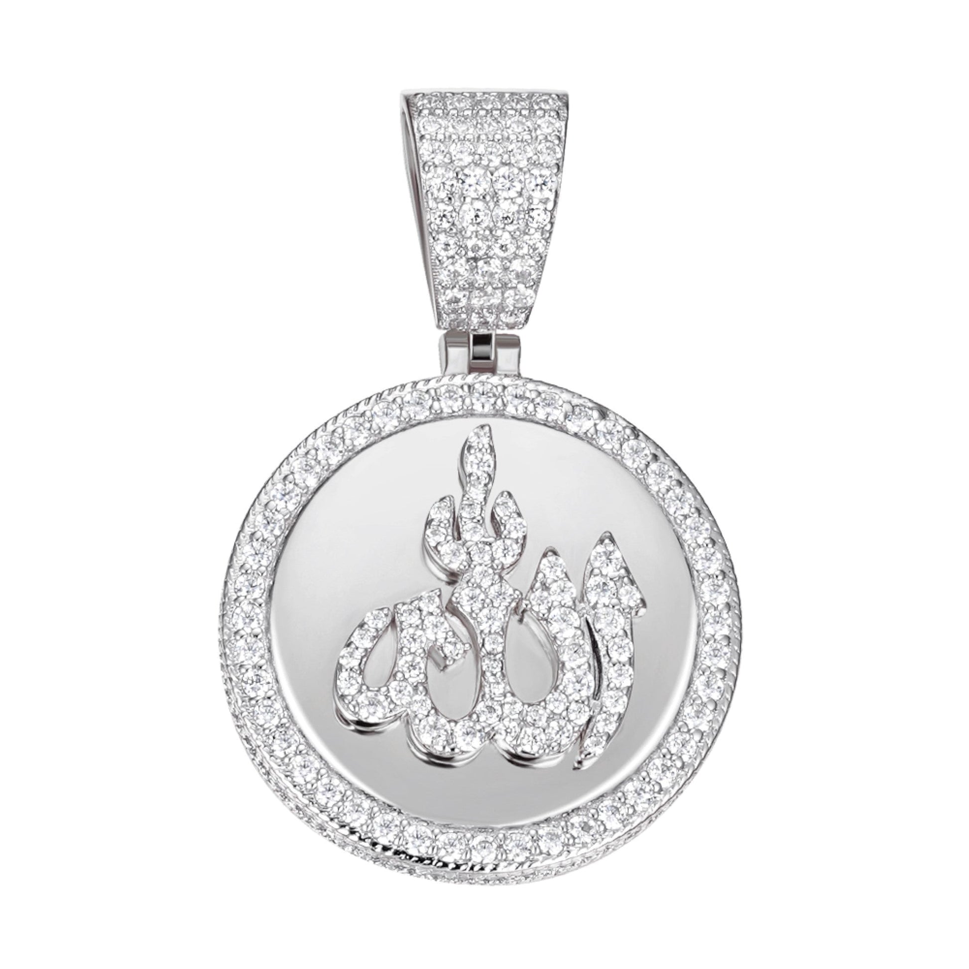 S.Silver 35mm Round Moissanite Muslim God Allah Religious Pendant RP 4-5/8 Cttw