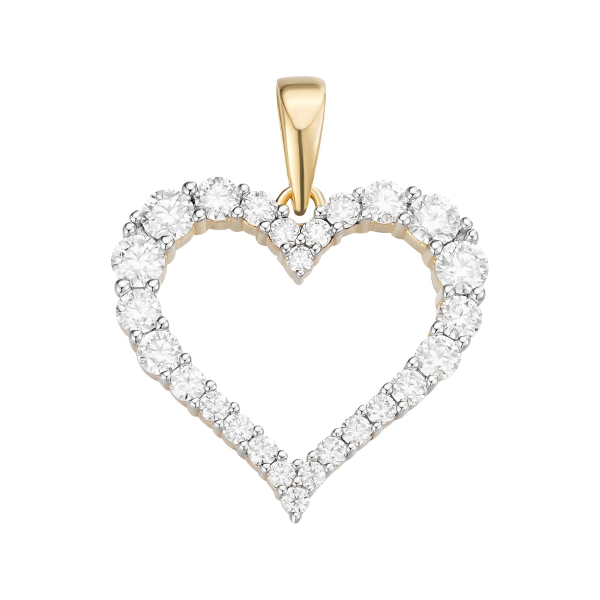 S.Silver Round Moissanite Single Row Heart Designer Pendant RP+GP 1-1/4 Cttw