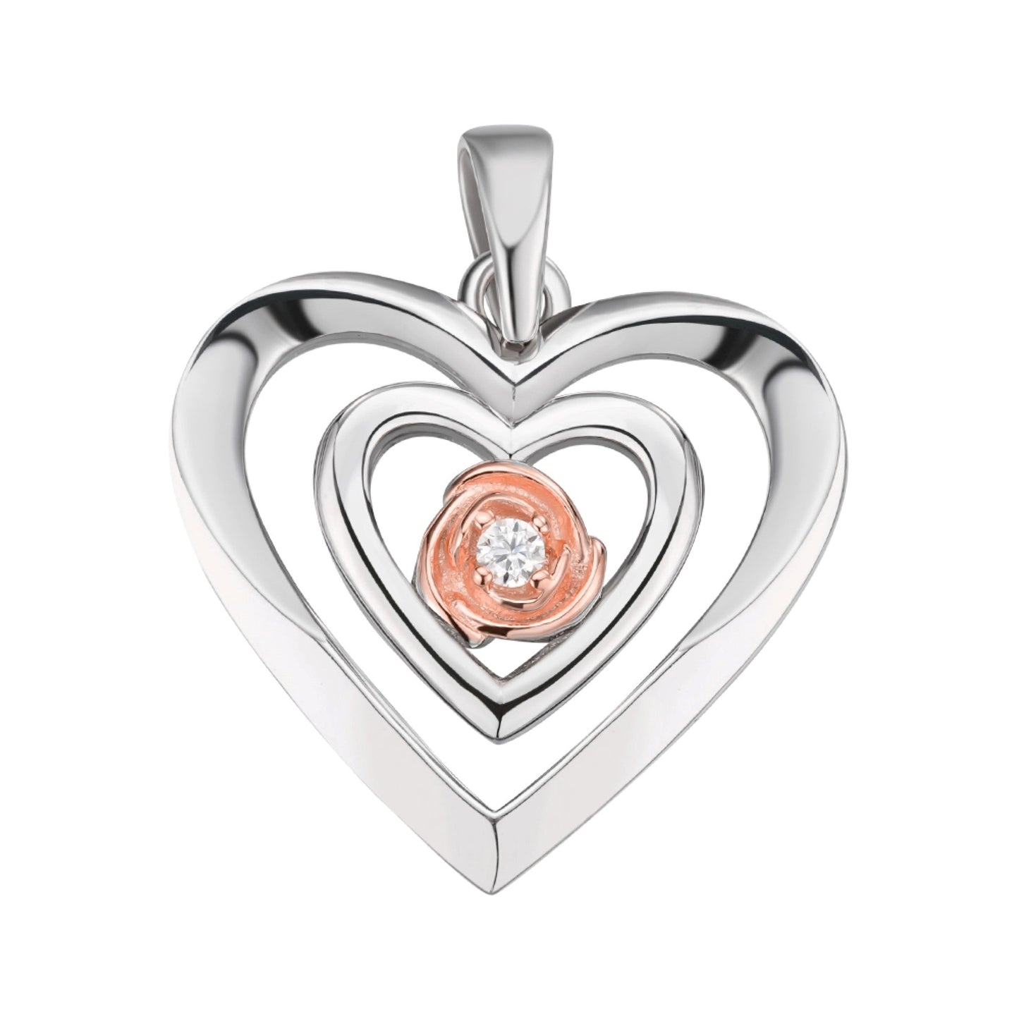 S.Silver Round Moissanite Solitaire Heart Designer Pendant RP+PP 1/10 Cttw
