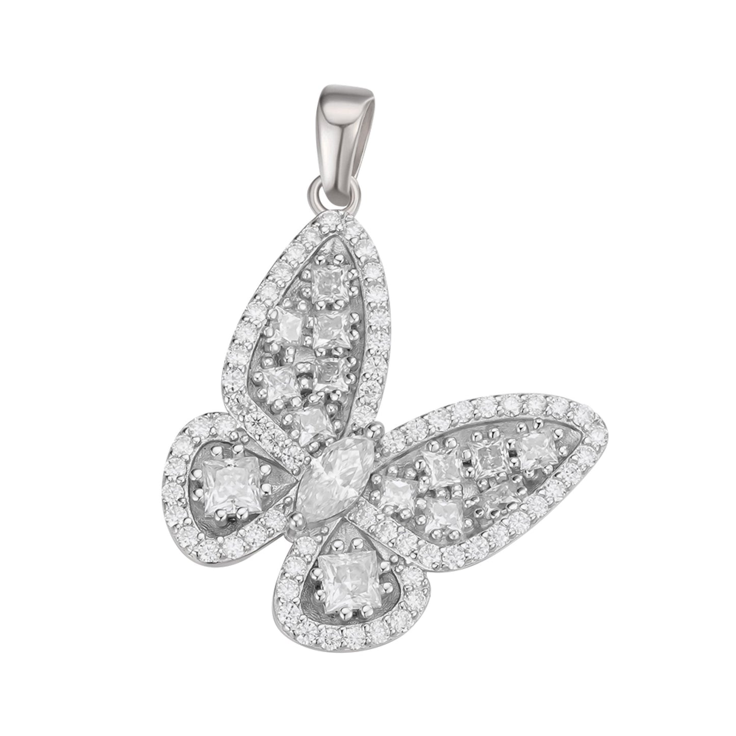 S.Silver Round Fancy Moissanite Butterfly Animal Pendant RP 2-1/8 Cttw