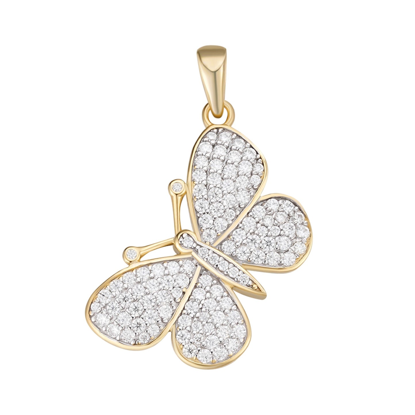 S.Silver Round Moissanite Butterfly Animal Pendant RP+GP 1 Cttw