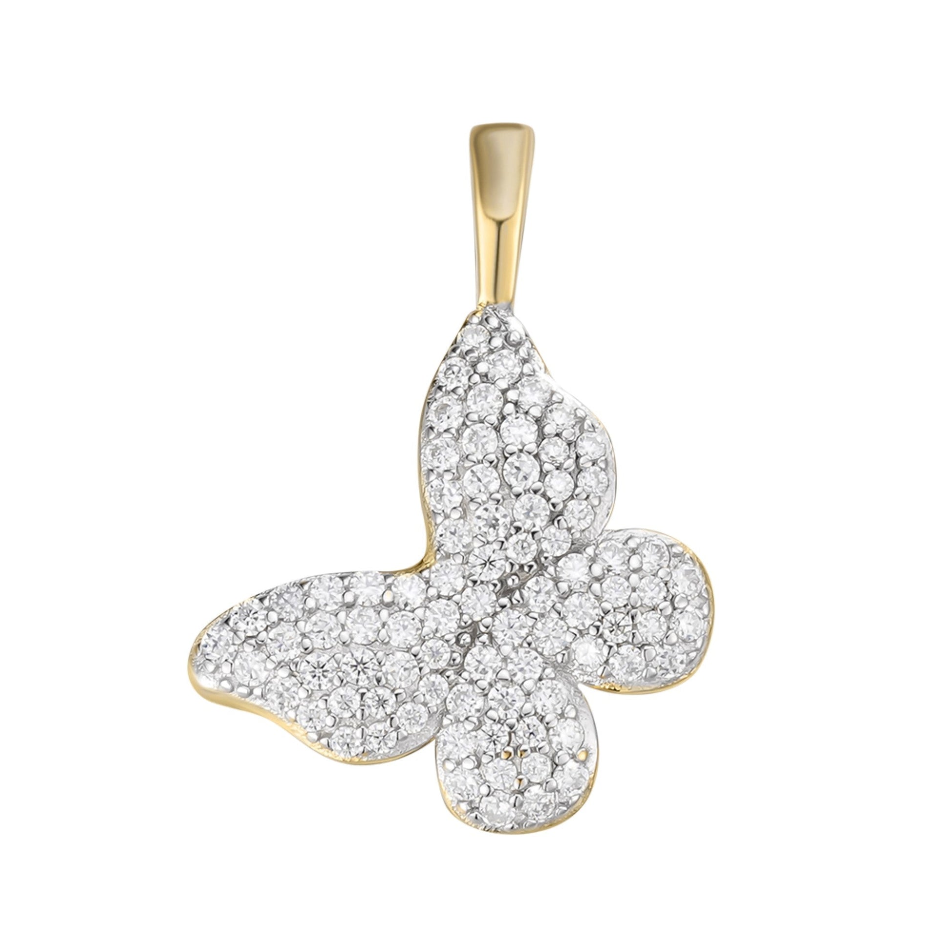 S.Silver Round Moissanite Butterfly Animal Pendant RP+GP 5/8 Cttw