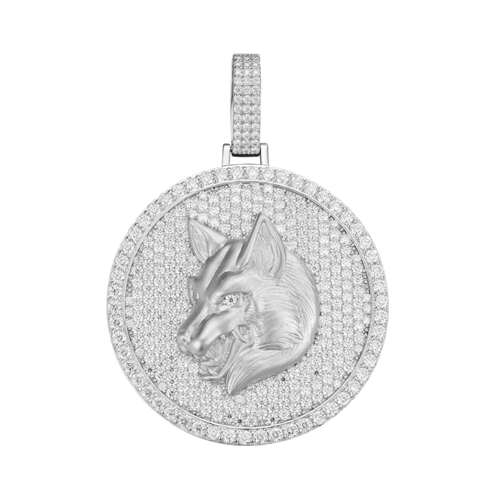 S.Silver Round Moissanite Wolf Animal Pendant RP 10-7/8 Cttw