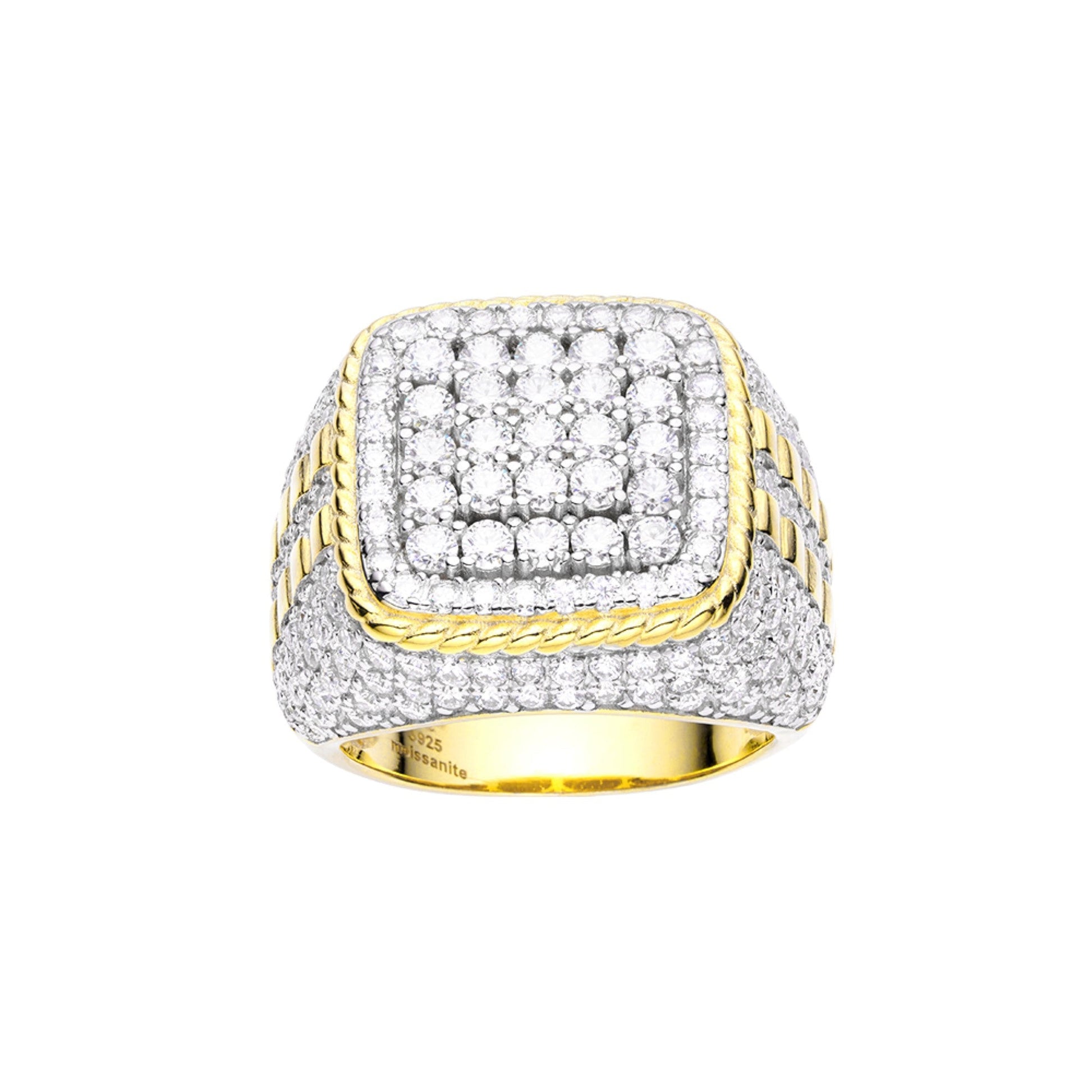 S.Silver Round Moissanite Designer Sz 9 Mens Ring 3-7/8 Cttw RP+PP