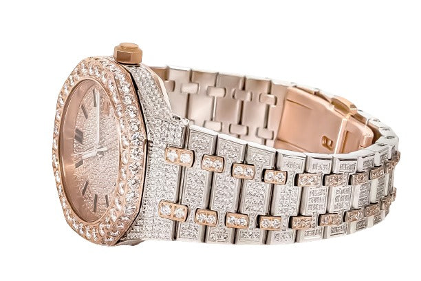 Moissanite Stainless Steel Watch Two Tone Steel Band 22-1/3 Cttw