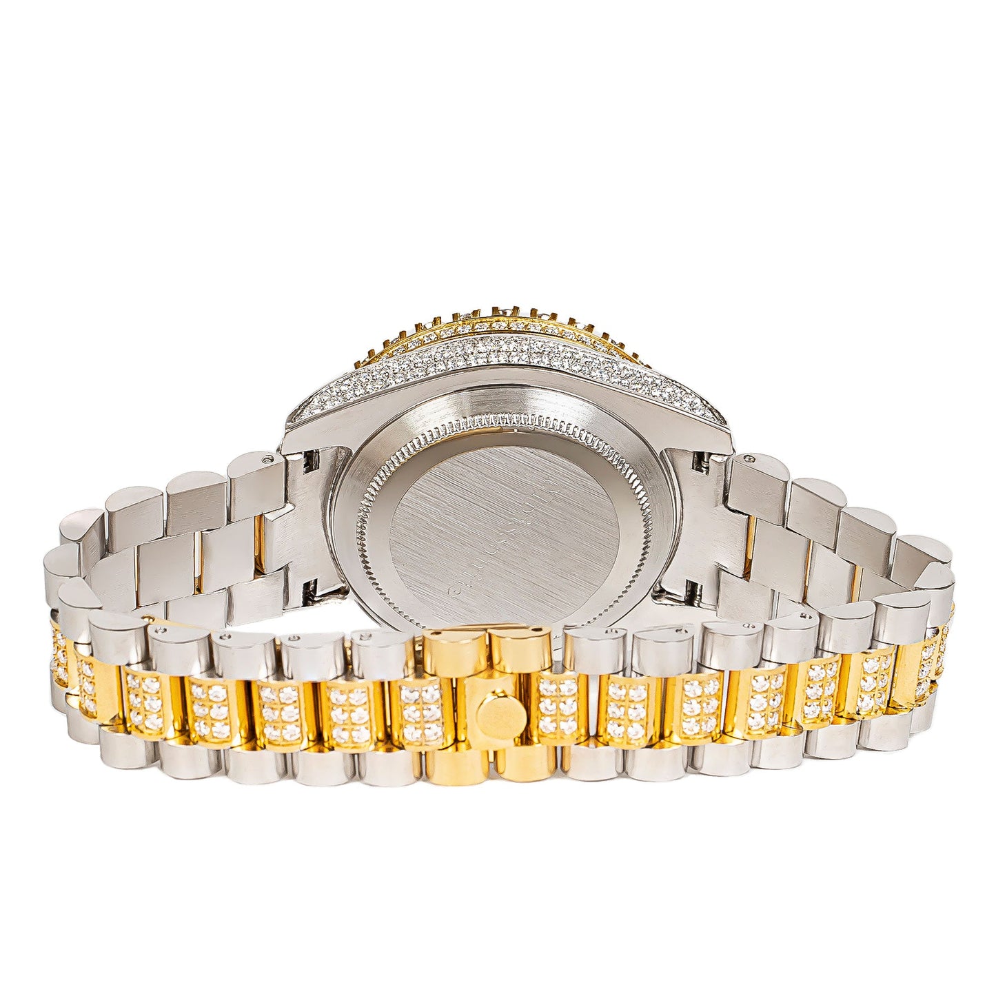 Moissanite Stainless Steel Mens Yellow White Two Tone Steel Band Watch